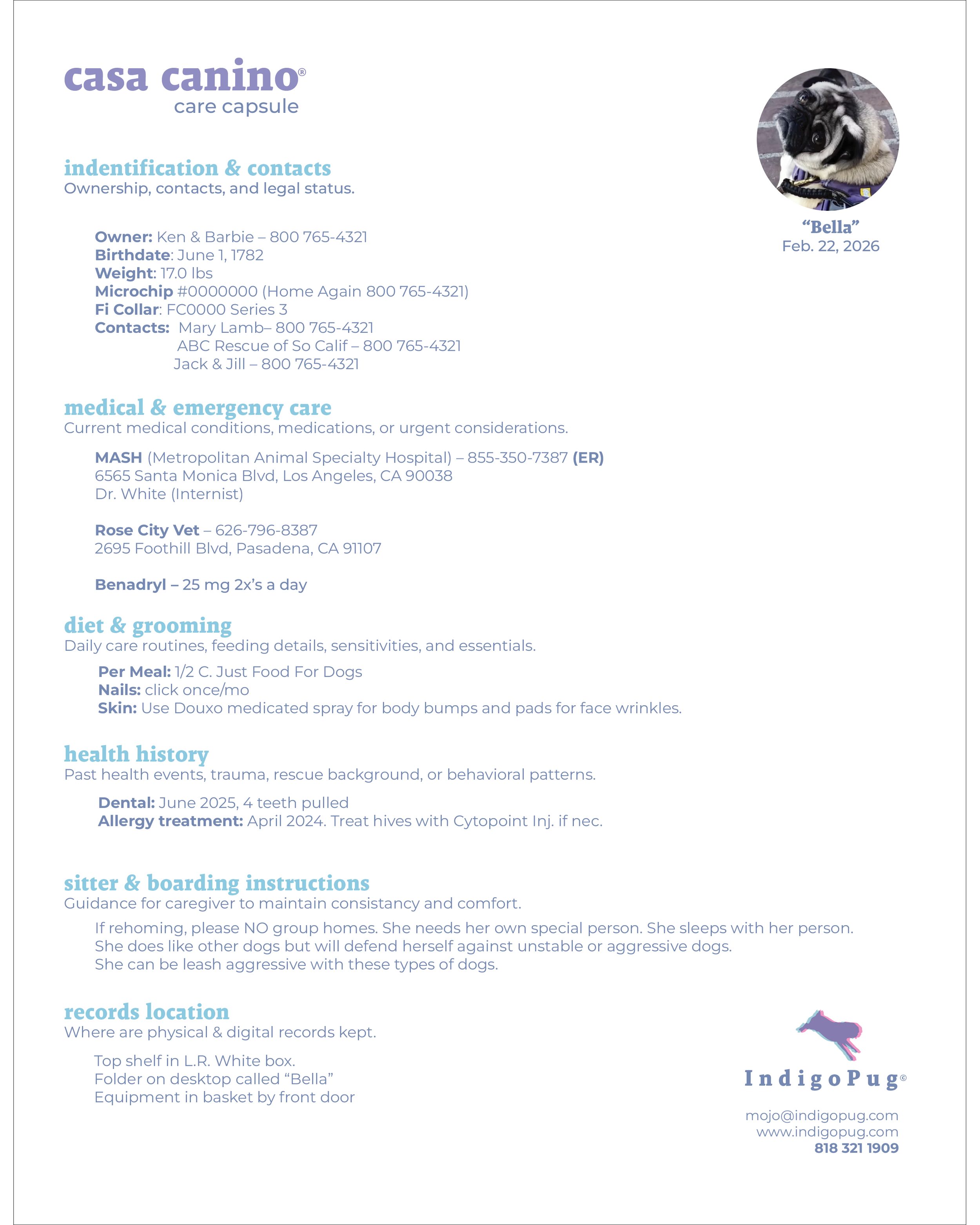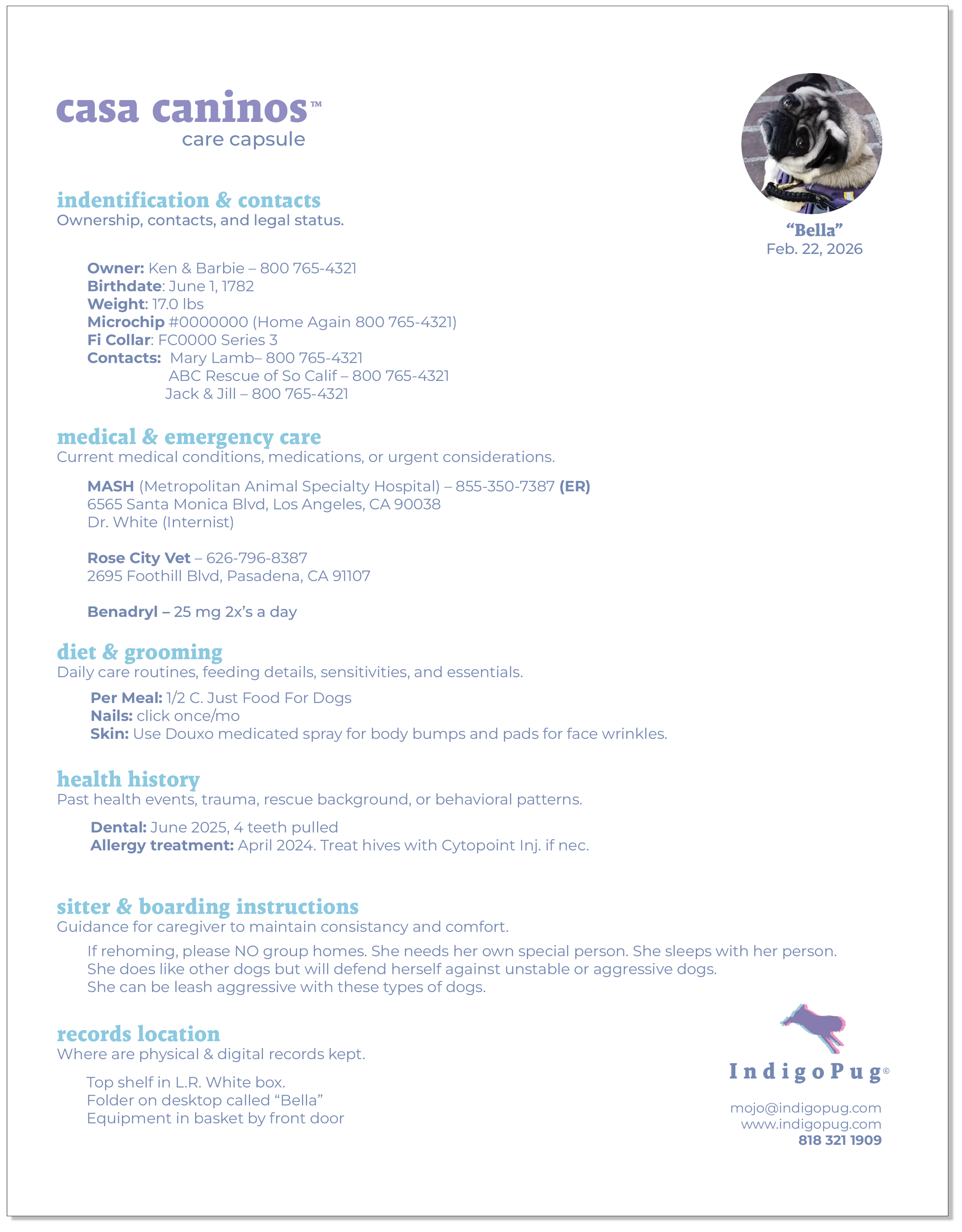 Options for a digital copy so you can update and revise your dog’s profile yourself.
